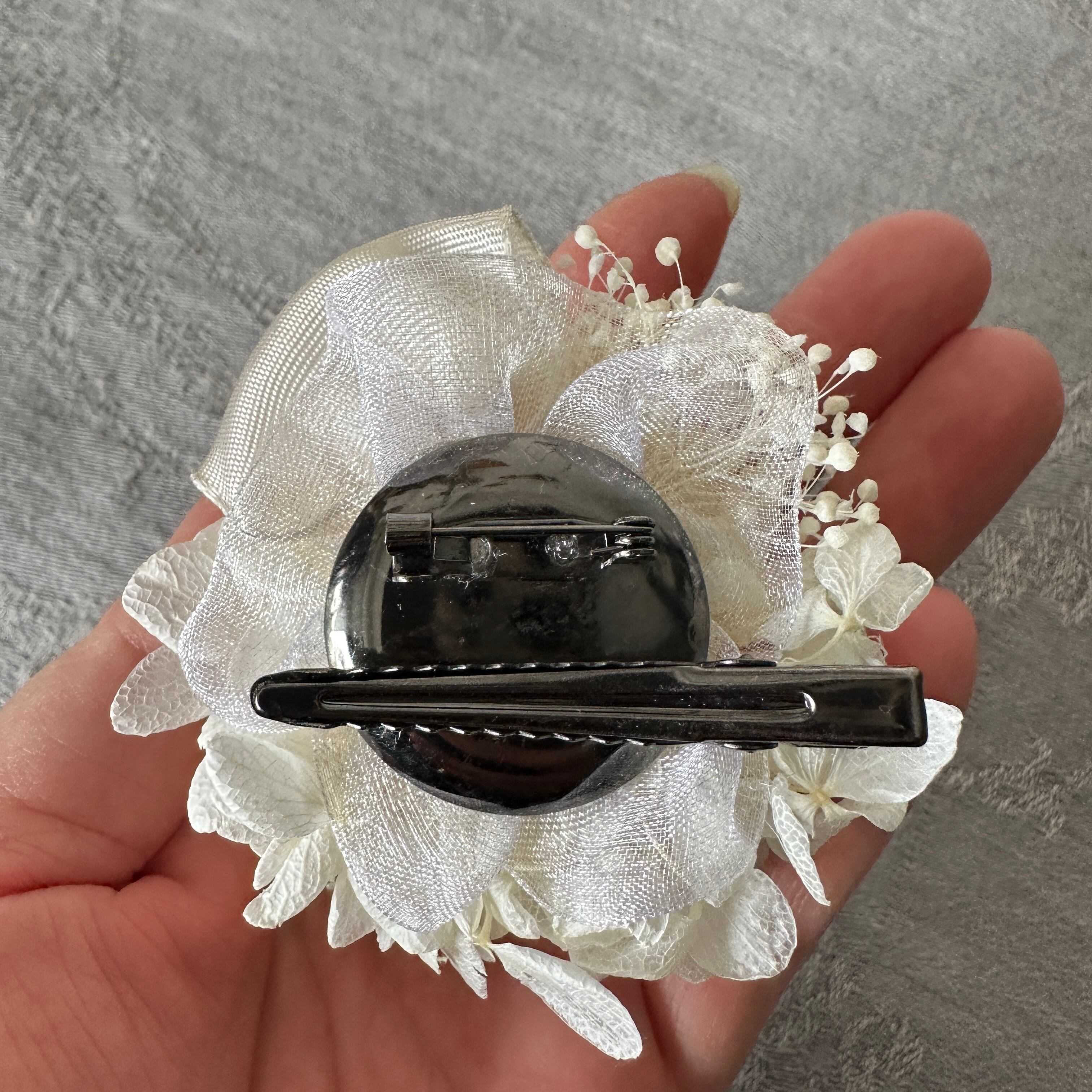 裏面は安全ピンとクリップが付いていますので、ヘアドレスとしてもご利用いただけます。