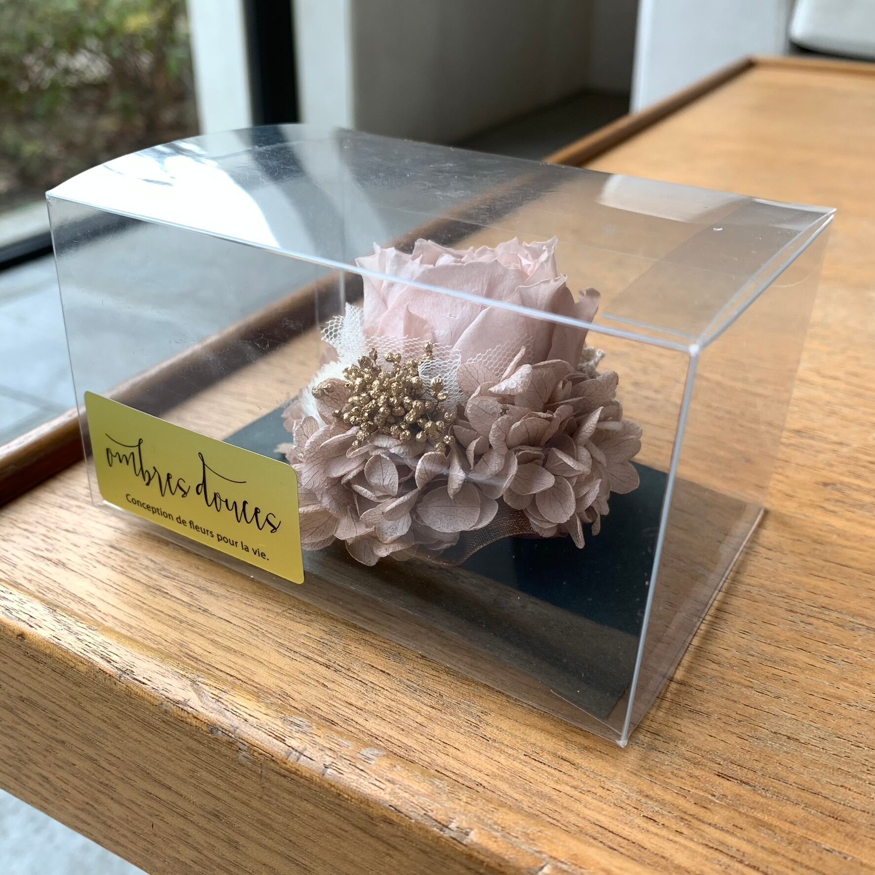 また、お取り扱いの際は花に直接触れずに、茎の部分(ワイヤー)やクリップ部分を持つことをお勧めします。コサージュの取り出し方は、商品に添付している「コサージュの取り出し方」をご参照ください。