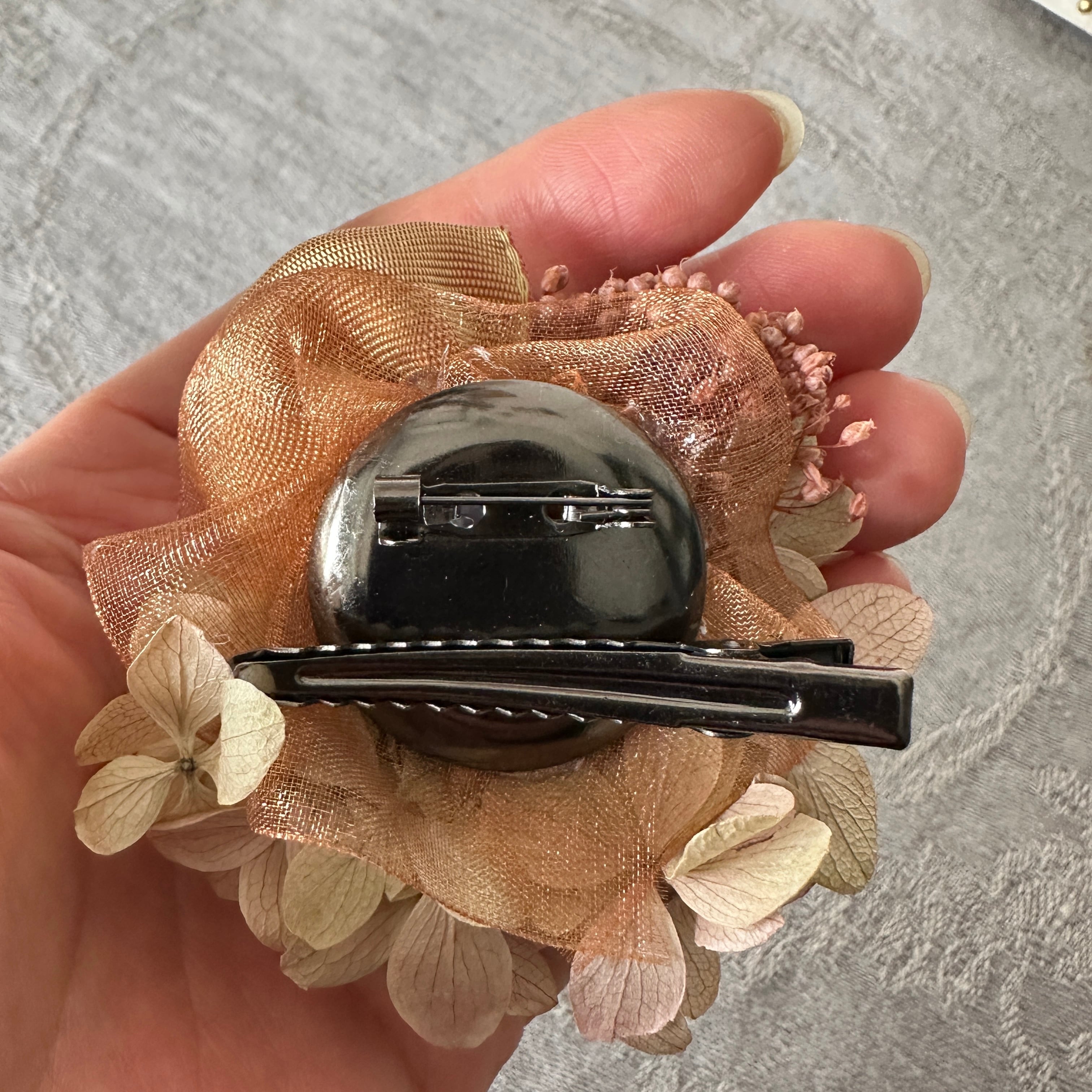 裏面は安全ピンとクリップが付いていますので、ヘアドレスとしてもご利用いただけます。