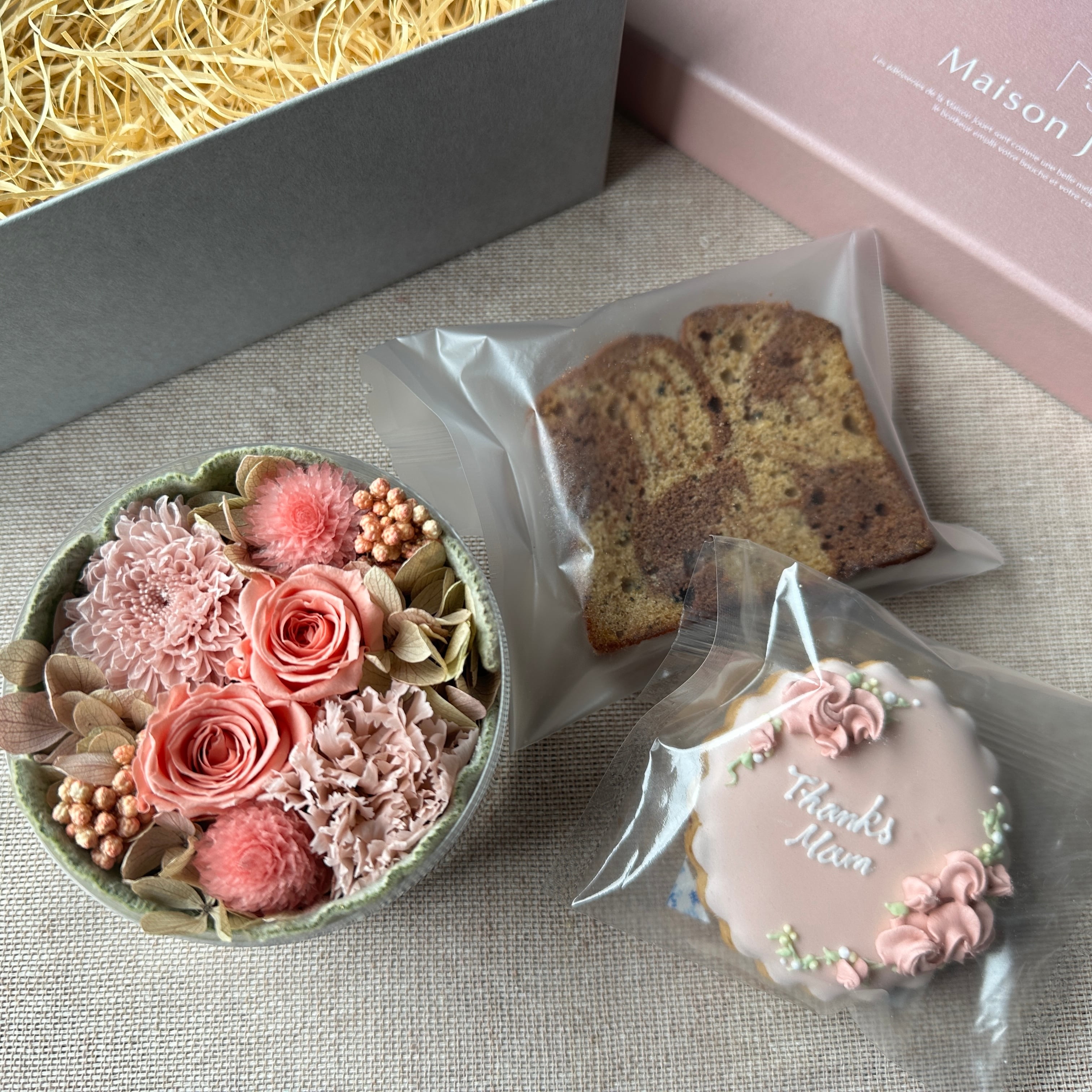 プリザーブドフラワーとは、生花の組織を保ちながら水分を抜き、特殊な溶液による加工によって、色鮮やかで美しい花姿を長期間楽しむ事ができる花材です。その為、水やりなどのお世話の必要はありません。湿気や乾燥、直射日光や強い照明を避けると、より長く楽しめます。また、プリザーブドフラワーの寿命は2~3年程度と言われていますが、その後も花の姿や形に大きな変化はなく、年月とともに花色がセピア色へゆっくりと変化していきます。経年変化を楽しめるのもプリザーブドフラワーの魅力の一つです。