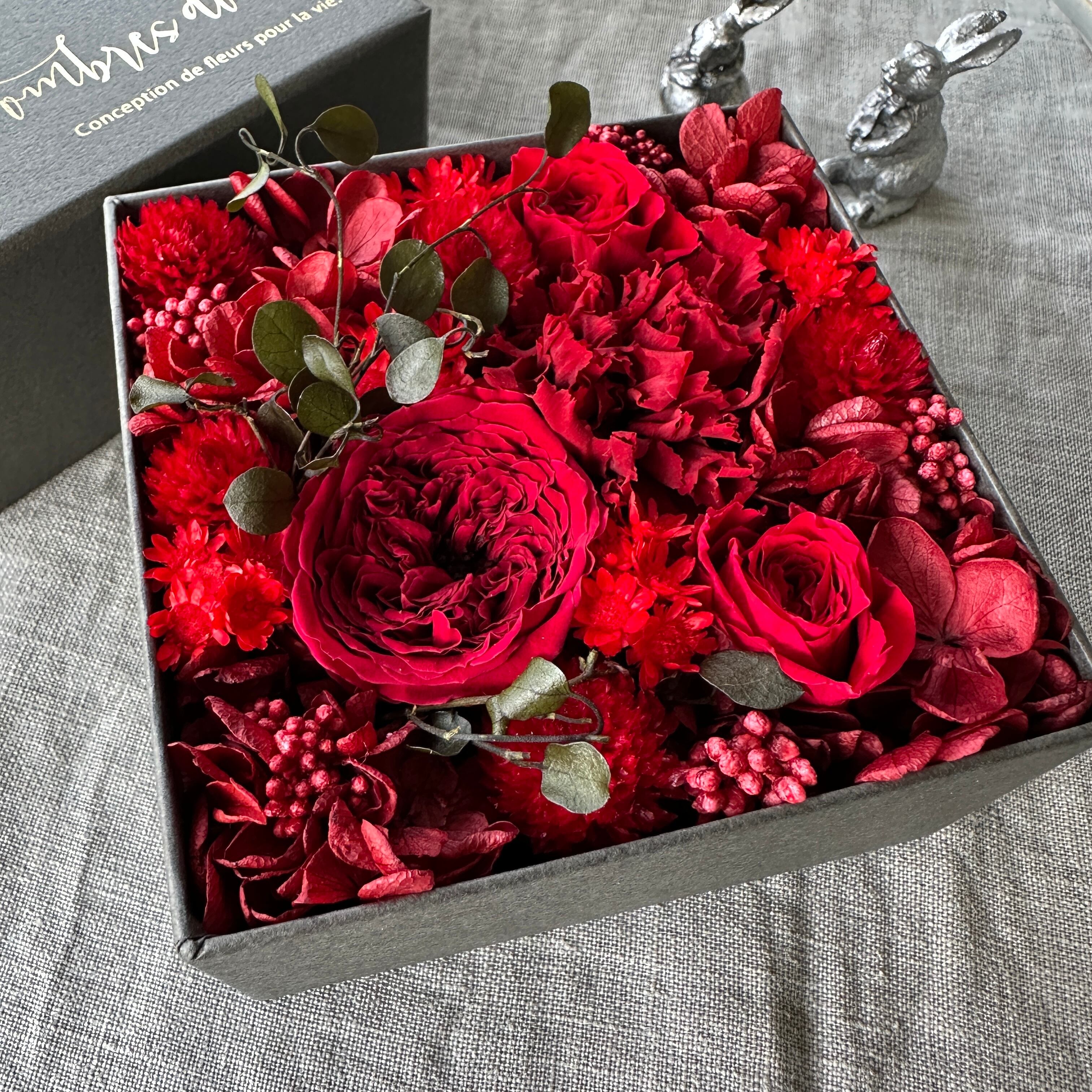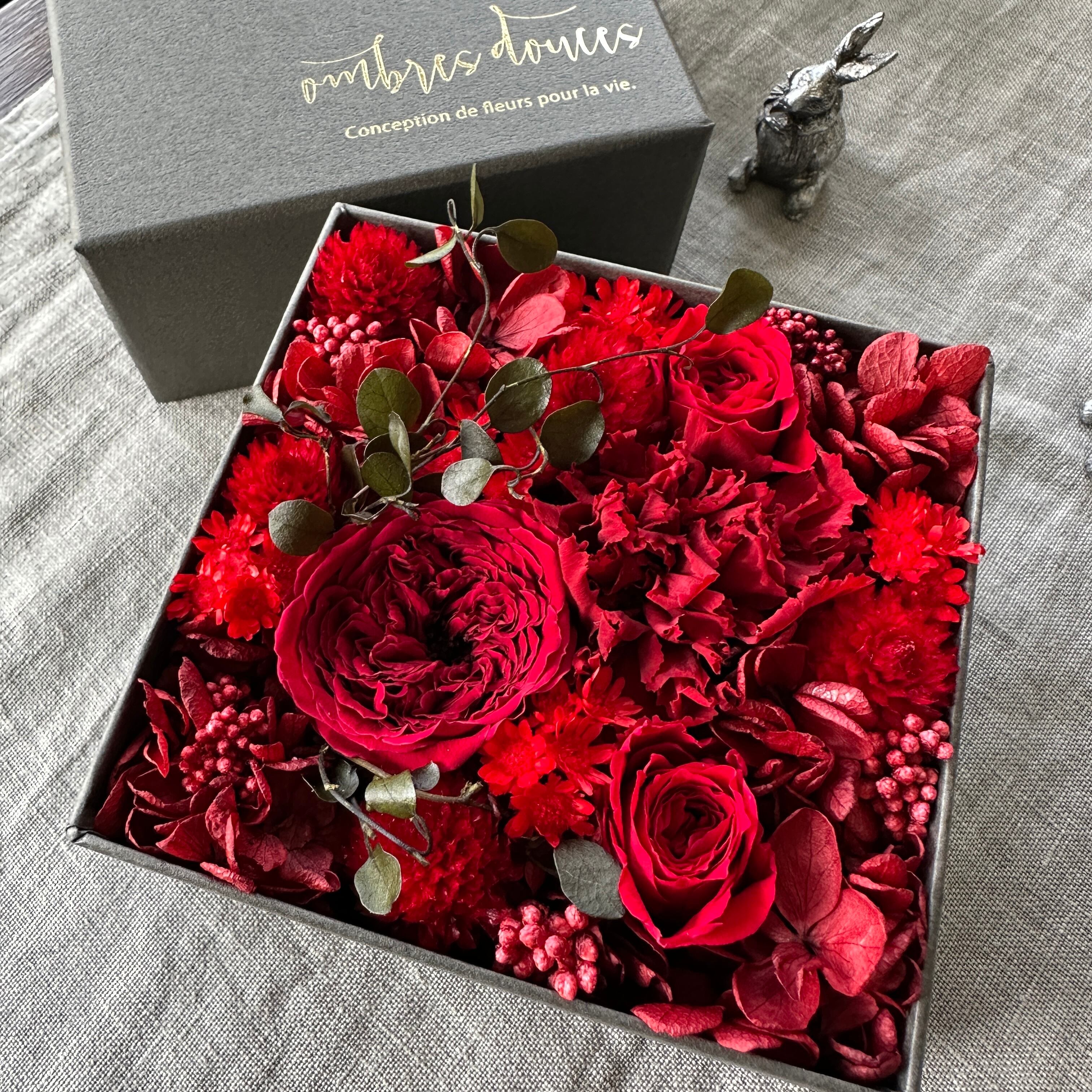 ombres doucesオリジナルボックスにプリザーブドフラワーをアレンジメントしました。
