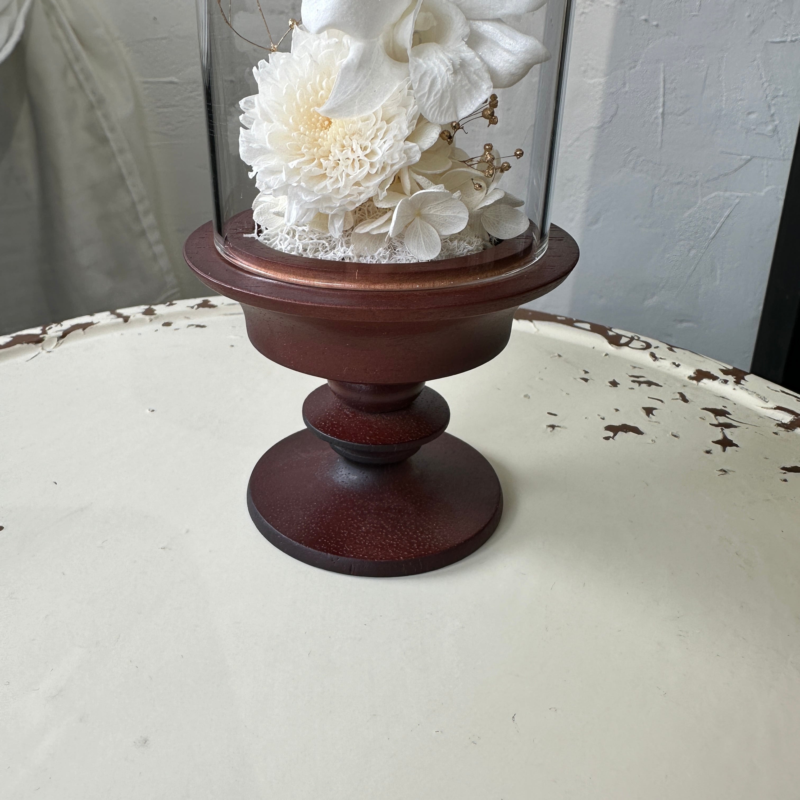 ※天然素材を使用して加工しているため、咲き具合や大きさ、色味など多少ばらつきがございます。それぞれの花材の個性を生かし、バランスを見ながらまた一点一点、心を込めて手作業で製作しております。その為、個体差が生じる特性がございますがご理解の上ご購入くださいますようお願いいたします。